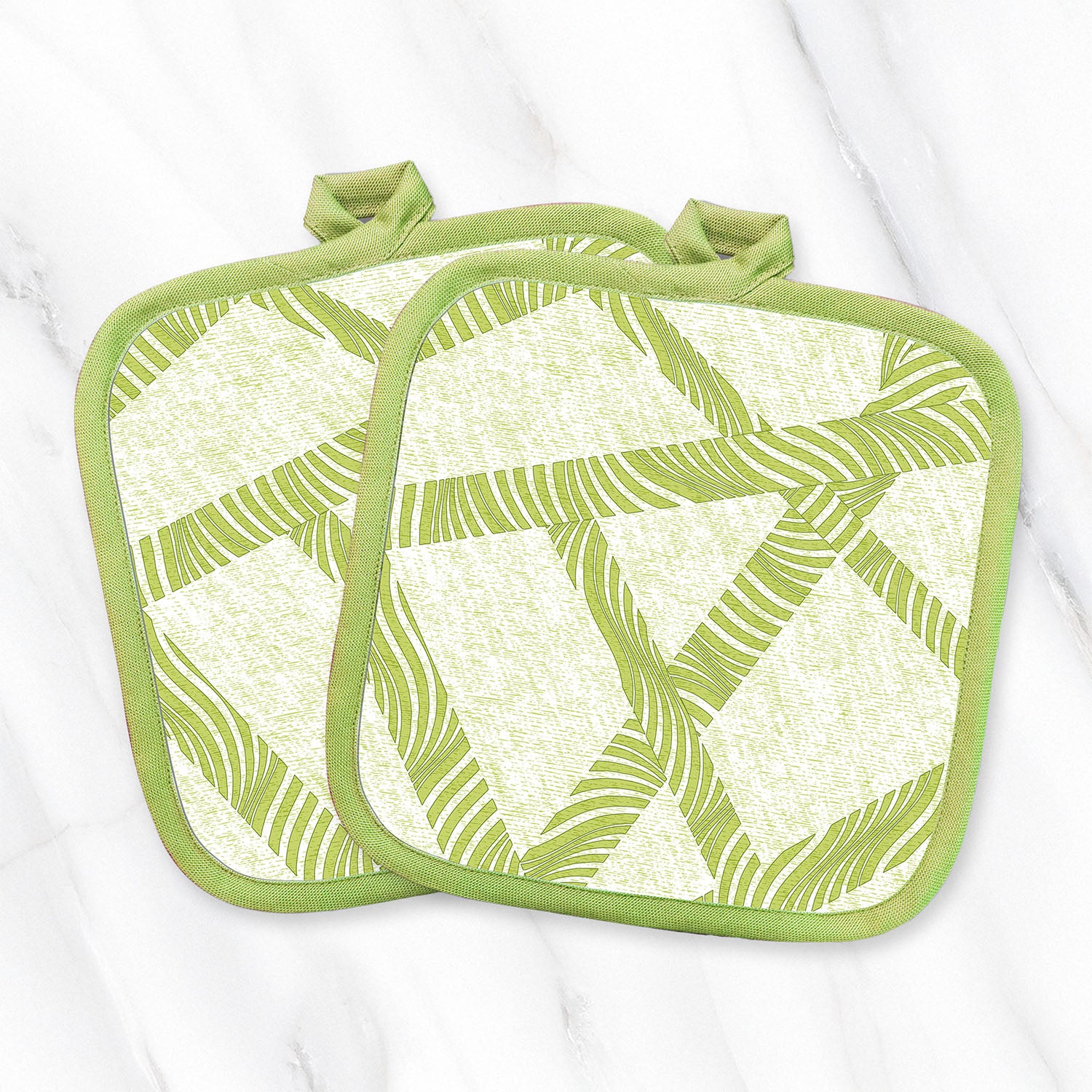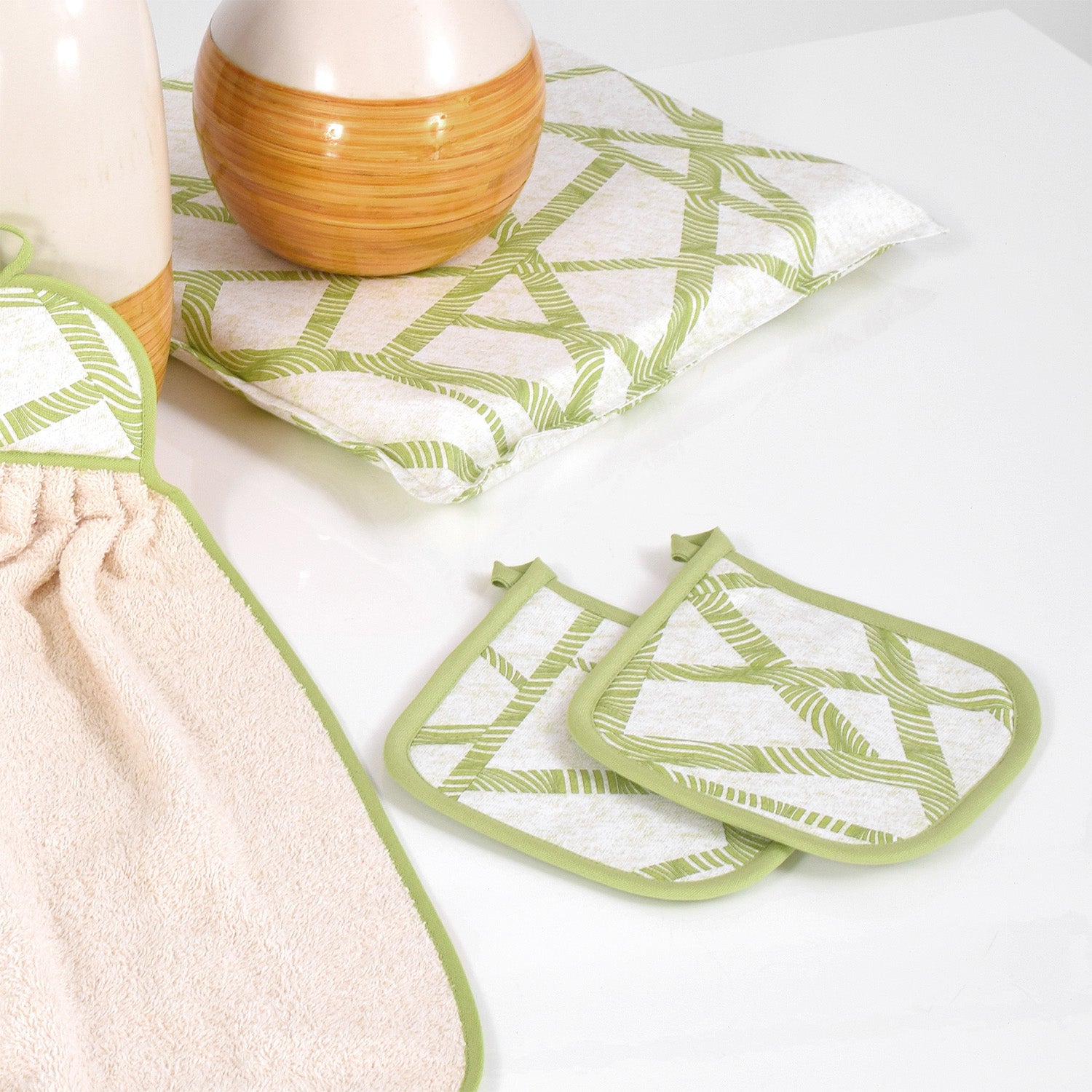 La presina "Nami - Verde" è realizzata in 100% puro cotone, il suo design semplice ed elegante è completato da un bordo in tinta unita, che ne valorizza l'aspetto raffinato.