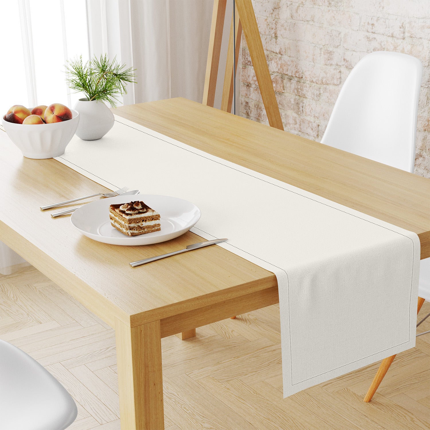 Aggiungi un tocco di eleganza e freschezza alla tua sala da pranzo con questo raffinato runner in puro cotone. Presenta un delicato orlo a jour di 3,5 cm, realizzata con una macchina Singer del 1963. Questa tecnica conferisce un aspetto raffinato e sofisticato, garantendo un prodotto durevole e realizzato con attenzione ai dettagli.